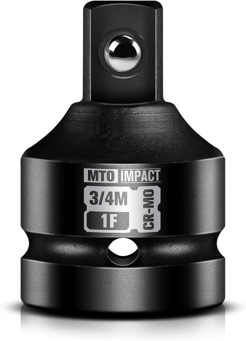 - Excellent quality: MTO 1 to 3/4 socket adapter is made from heat-treated chrome-molybdenum alloy steel to enhance durability. and it features a rust-resistant manganese phosphate coating for superior rust protection; The smart spring-loaded detent ball system prevents dropping. while the through-hole at the drive end securely locks the adapter onto the drive tang. making it safer and more reliable during use